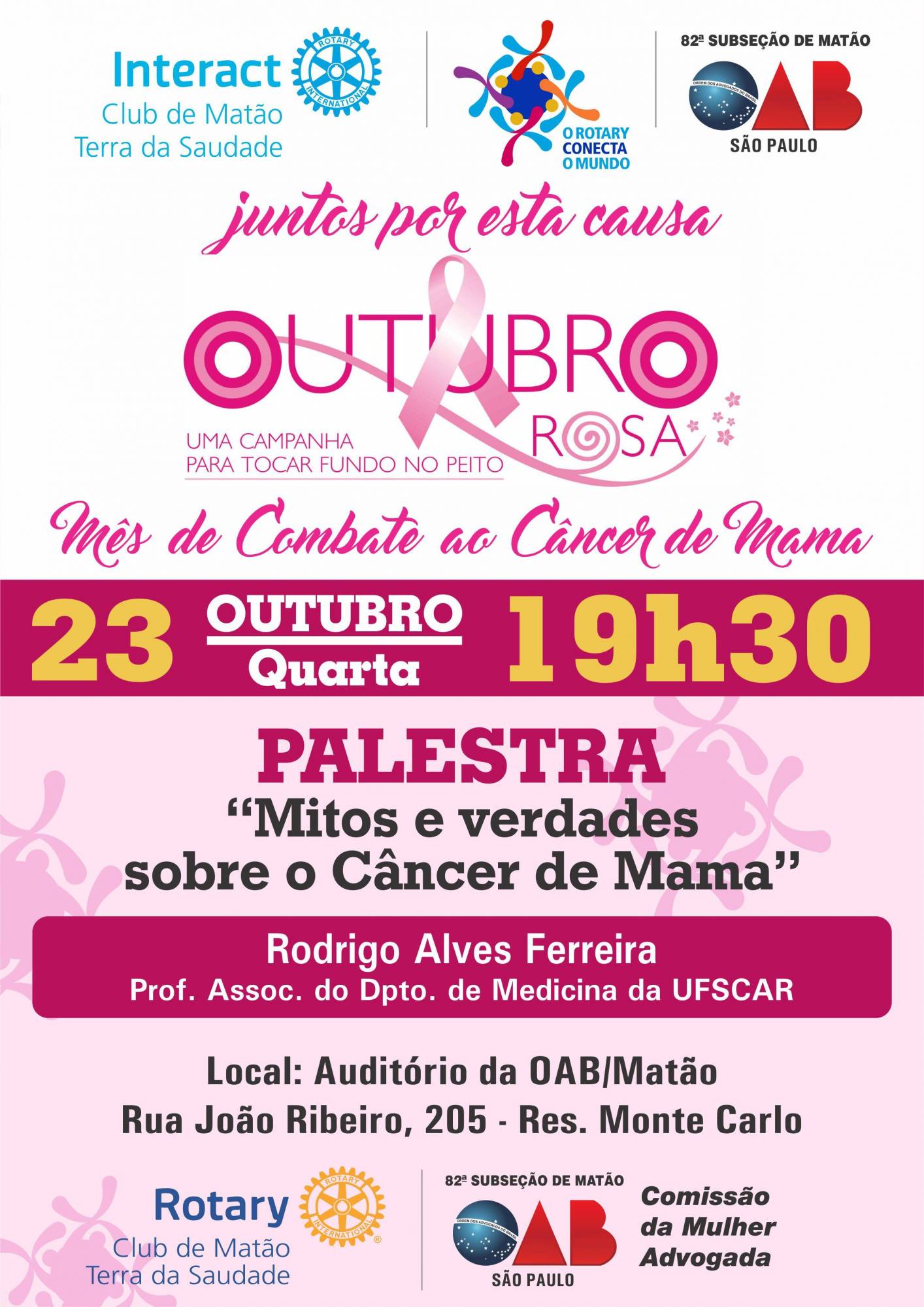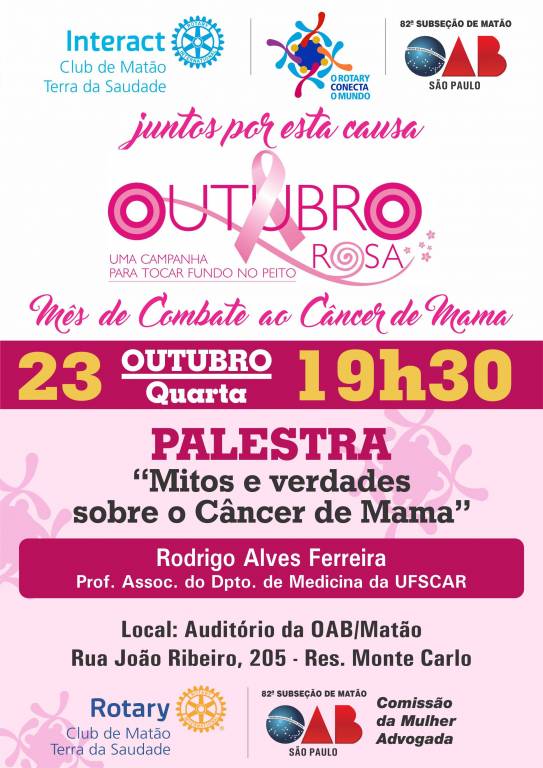 No dia 23 de Outubro, no mês do Outubro Rosa, o clube realizará uma palestra para alertar sobre a a importância da prevenção e do diagnóstico do câncer de mama.