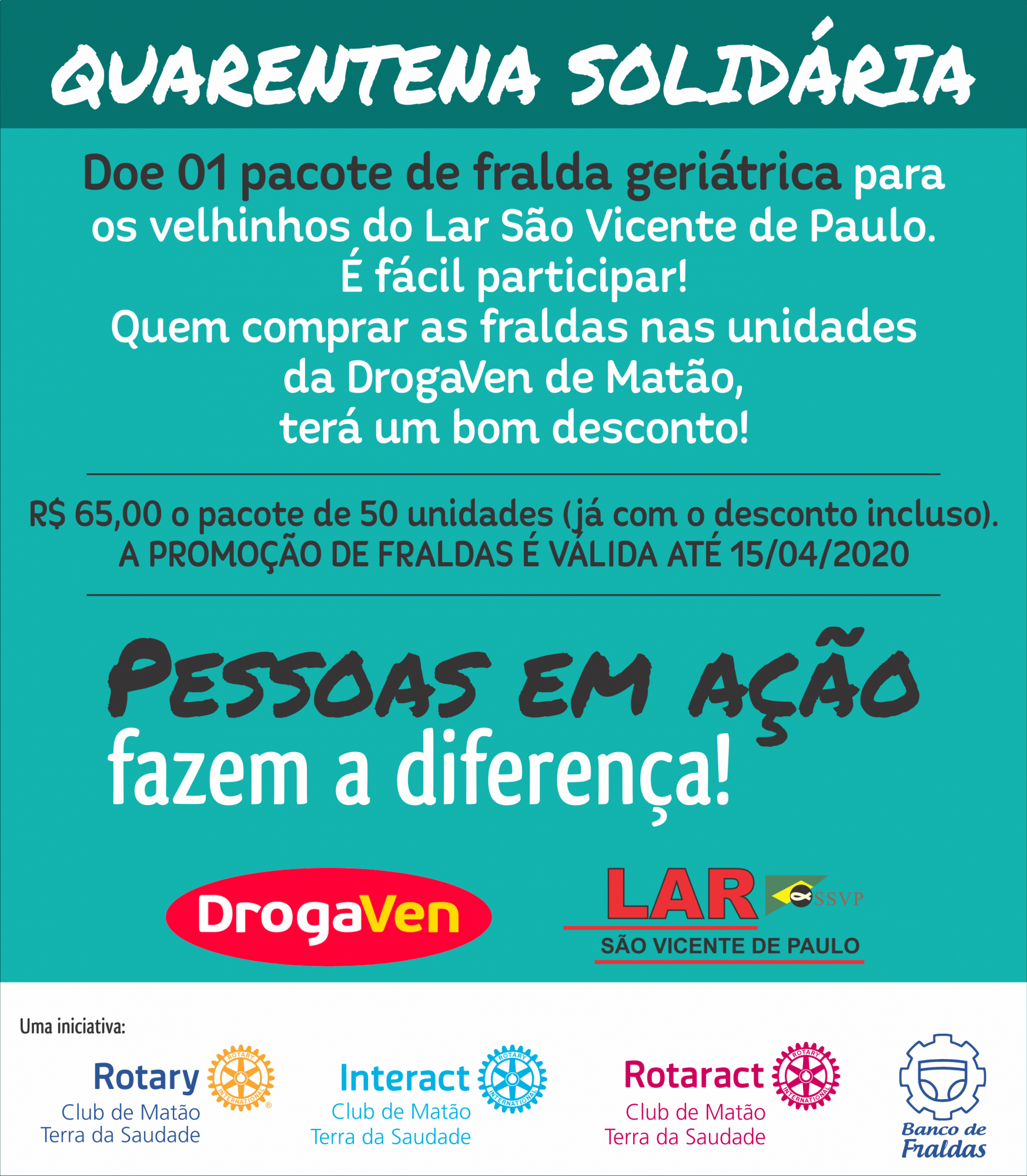 Em tempos de Covid-19, realizamos a doação de 1.000 fraldas geriátricas ao Lar São Vicente de Paulo, em parceria com a DrogaVen Matão.