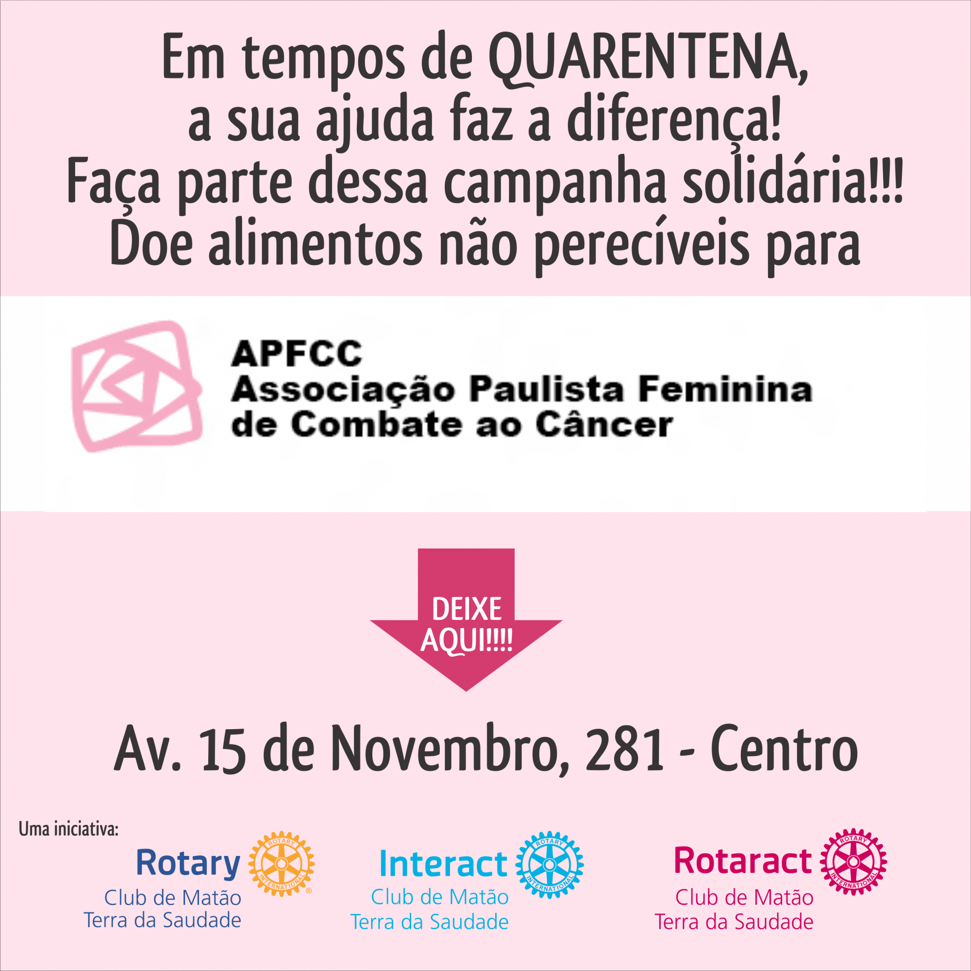 Postado em: 29 de Abril de 2020 por Rotary Club de Matão-Terra da Saudade